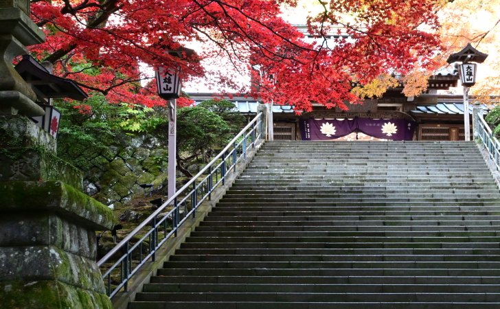 本堂に通じる瑠璃門への階段を颯爽と登る方がおりました。その姿が景色にマッチしていたので一枚撮らせて貰いました。