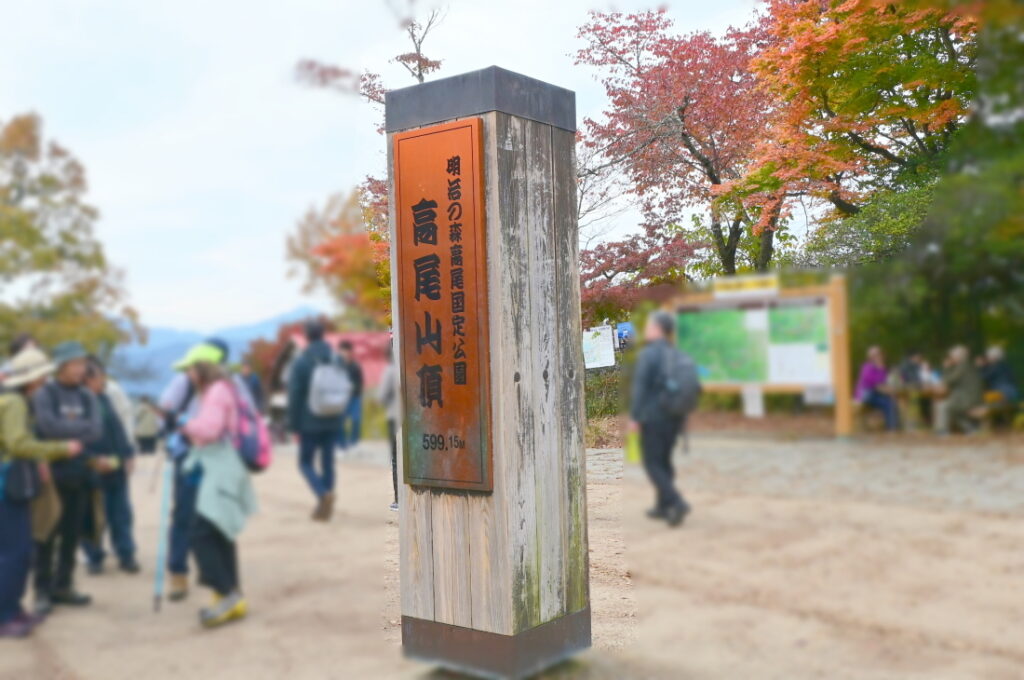 高尾山の年間観光客は300万人前後で、世界一とも言われる人気の山です。山頂はさすがの人出で、人が途絶えるのを待つと日が暮れそうなのでモザイク処理としました。