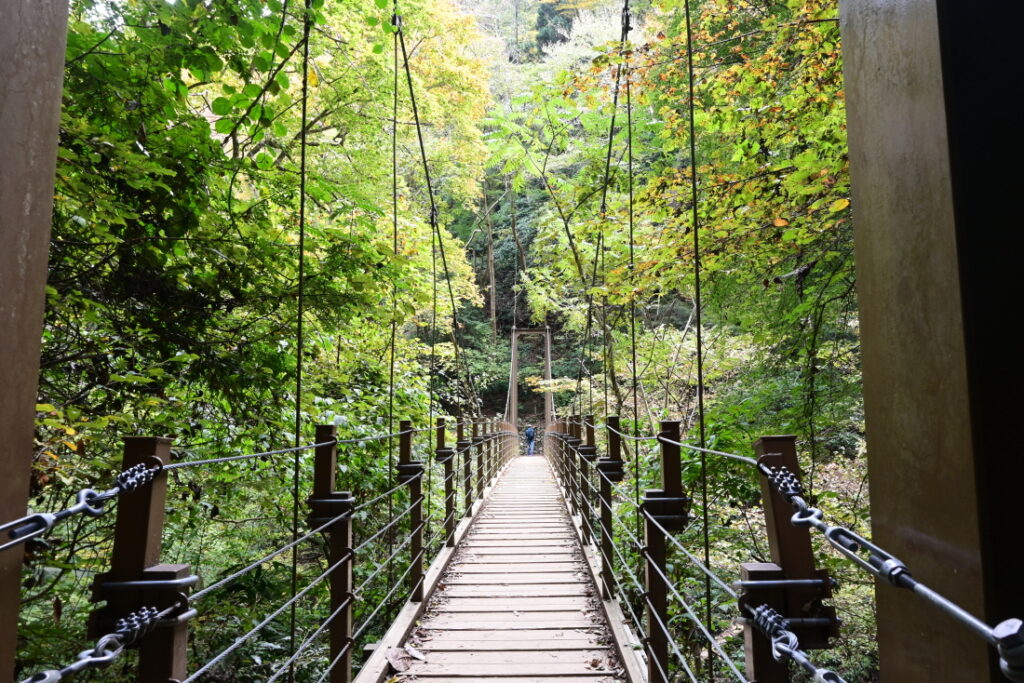 午後になると1号路は混雑するので人の少ない4号路を下ります。4号路は舗装されていない登山道で途中のみやま橋がいい雰囲気でした。